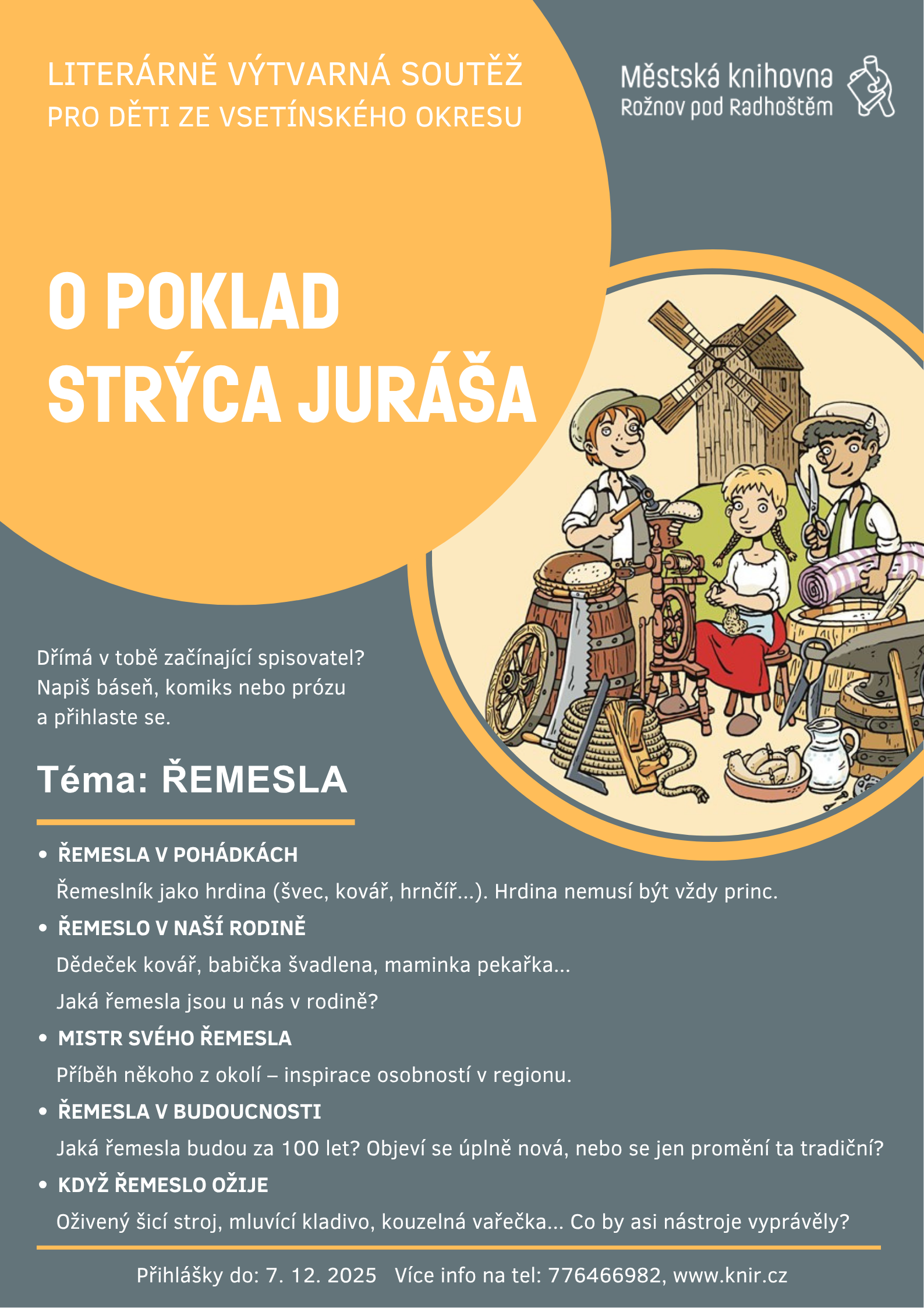Soutěž je součástí národního projektu Klubu dětských knihoven SKIP (Sdružení knihovníků a informačních pracovníků) Kde končí svět. Díla, která uspějí v oblastním kole, postupují do kola okresního, a na závěr jsou vyhodnoceni nejlepší autoři z celého kraje. Oblastního kola se pravidelně účastní 120–150 dětí. Vítězné práce rožnovských dětí byly úspěšné i v minulých ročnících okresních kol. Téma školního roku 2025/26 je Řemesla. Podrobné informace.