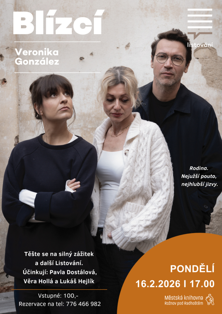 A kdo nám zahraje? Do knihovny za námi dorazí Pavla Dostálová, Věra Hollá a Lukáš Hejlík. Vstupné 100,-, vstupenky k prodeji v knihovně.