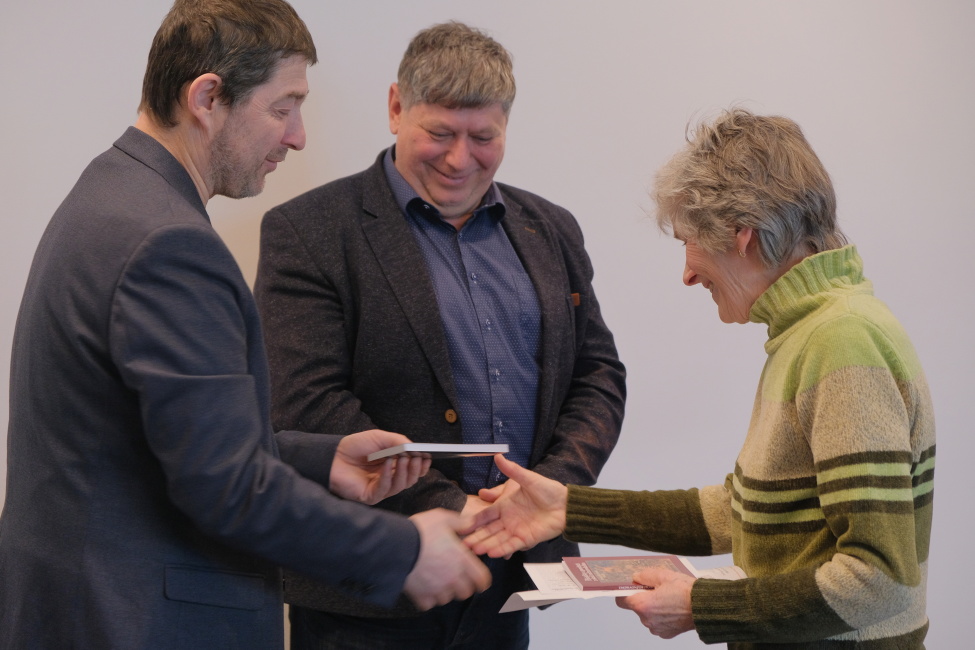 Místostarosta Tomáš Gross, ředitel knihovny Pavel Zajíc a knihovník Michal Hurta, který VU3V už dlouhá léta vede, poblahopřáli studentům a předali jim ceny. Všem ještě jednou moc gratulujeme, přejeme hodně úspěchů a neutuchající chuť do dalšího studia!